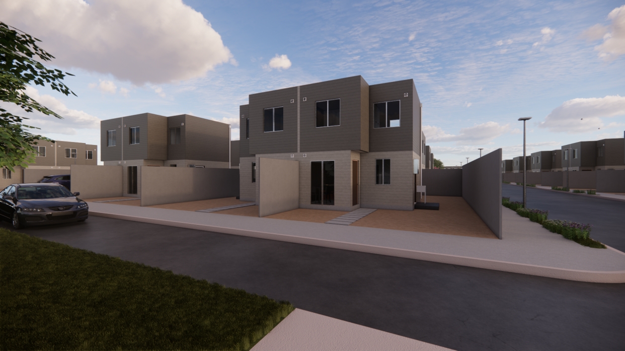 Proyecto correspondiente a Condominio tipo A, de 65 viviendas unifamiliares, más una sala multiuso, portería y áreas verdes de recreación, esparcimiento y deporte. Correspondiente a postulación de subsidio colectivo para “Construcción en Nuevos Terrenos (CNT)”, acogida al DS49 (de V y U), en la Comuna Peñaflor, en la Región Metropolitana, Chile.