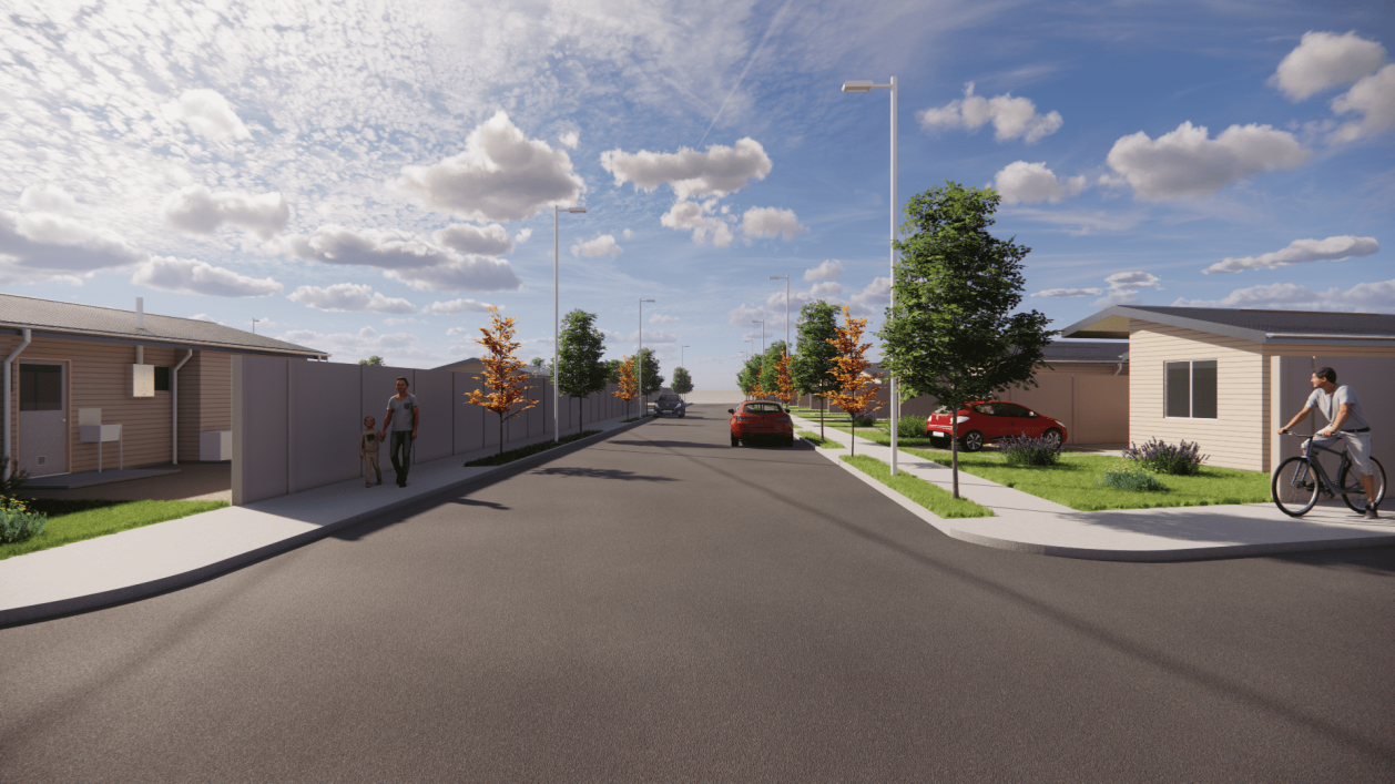 Proyecto correspondiente a Loteo, de 202 viviendas unifamiliares, realizado en 2 etapas, cuenta en cada una de ellas con una sala multiuso, portería y áreas verdes de recreación, esparcimiento y deporte. Correspondiente a postulación de subsidio colectivo para “Construcción en Nuevos Terrenos (CNT)”, acogida al DS49 (de V y U), en la Comuna Peñaflor, en la Región Metropolitana, Chile. Cuya implementación es en zona rural, por lo que se acoge al Art. 55 de la LGUC, y cuenta con IFC favorable del año 2021.