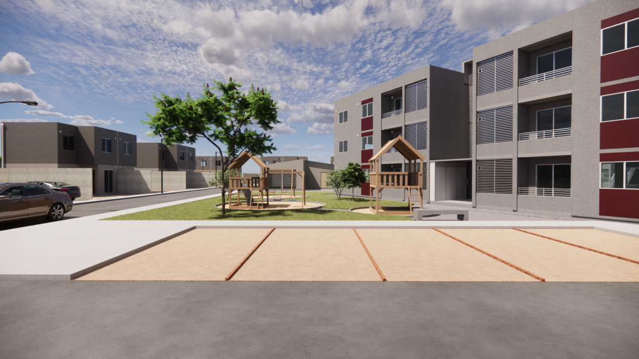 Proyecto correspondiente a condominios Tipo A, conformado por 202 viviendas distribuido en 3 lotes. Cuenta con una sala multiuso, portería, áreas verdes de recreación, esparcimiento y deporte. Correspondiente a postulación de subsidio colectivo para “Construcción en Nuevos Terrenos (CNT)”, acogida al DS49 (de V y U), en la Comuna San Felipe, en la Región de Valparaíso, Chile.